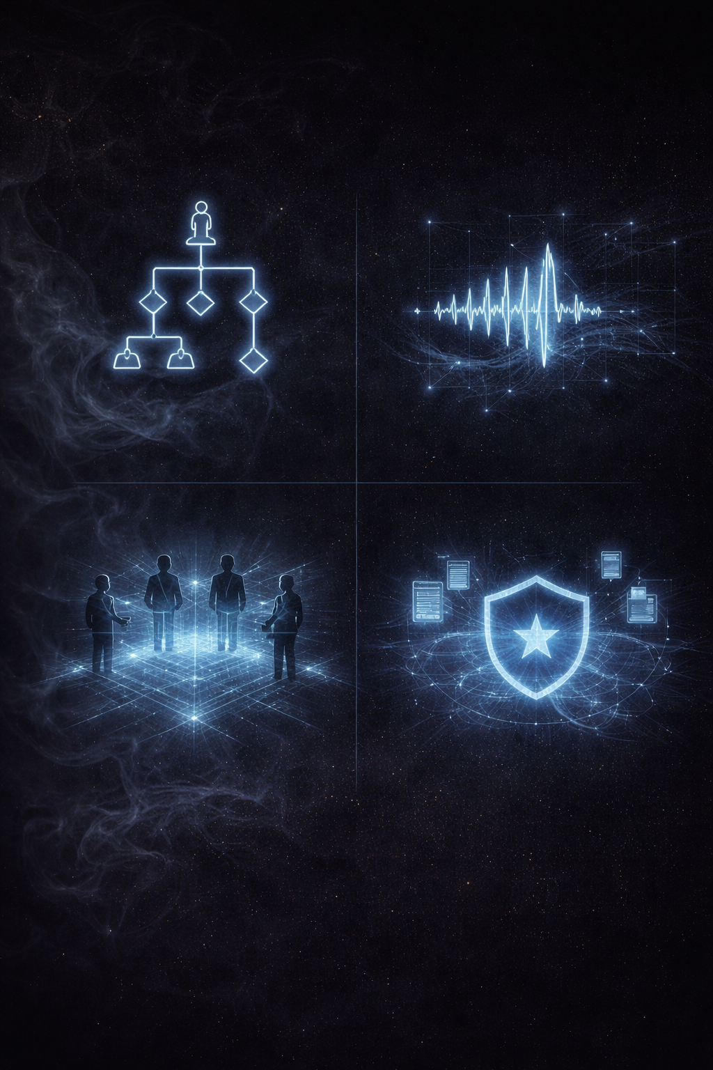 Interactive simulations are used to evaluate decision pathways, behavioural signals, and documentation patterns as they emerge across systems.